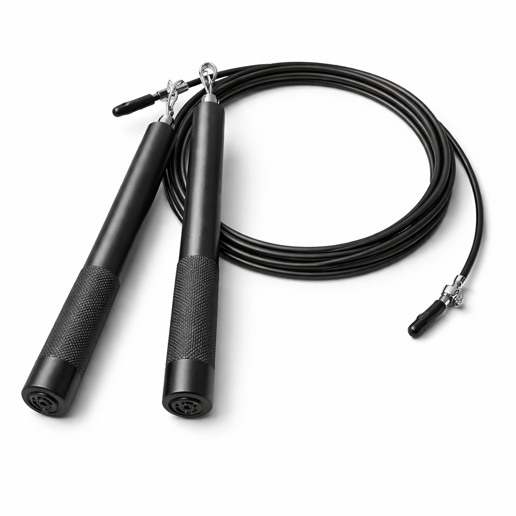 Adjust the rope length to your height. Hold the handles firmly and rotate using your wrists while maintaining a steady rhythm. Suitable for single jumps, double unders, and interval training.